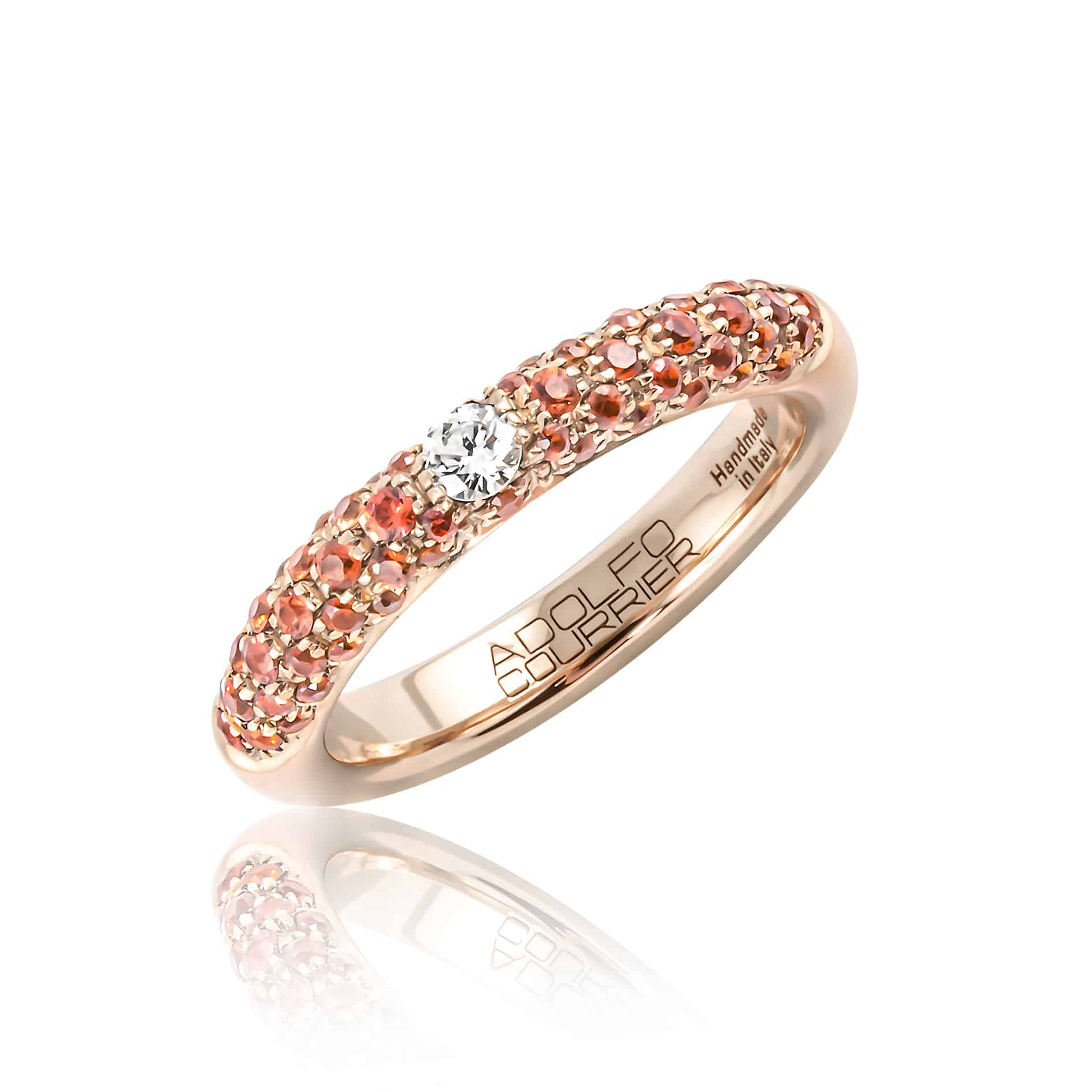 Anell Adolfo Courrier Pop1 Herme’s d’or rosa, diamant i safirs taronges.