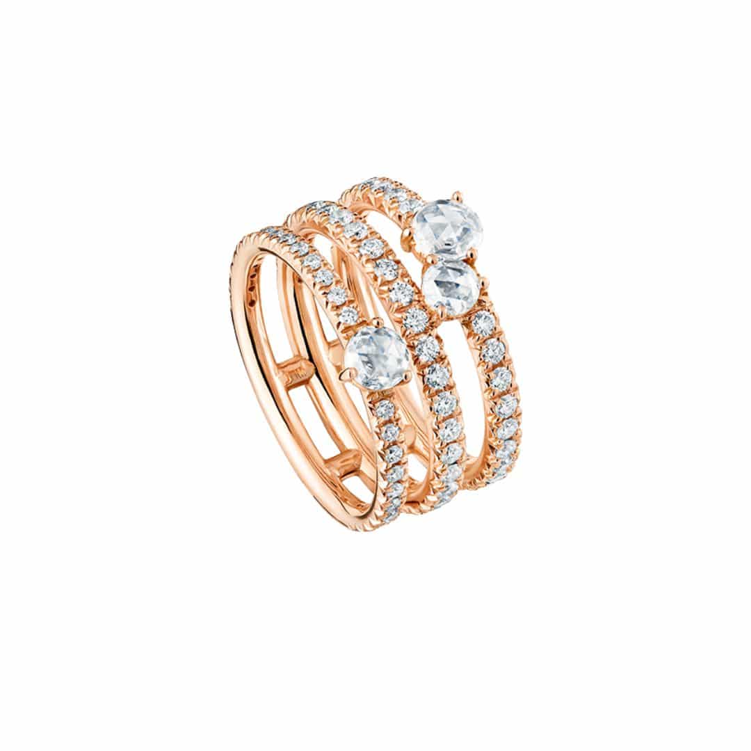 Anell Cervera Abrazo d’or rosa i diamants talla rosa.