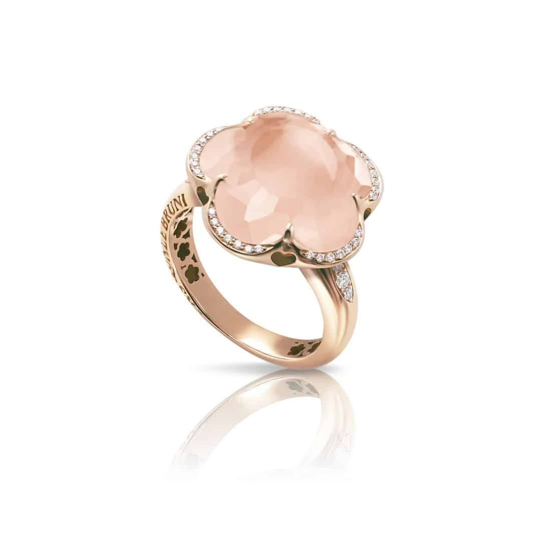Anell Pasquale Bruni Bon Ton d’or vermell, diamants, quars rosa.