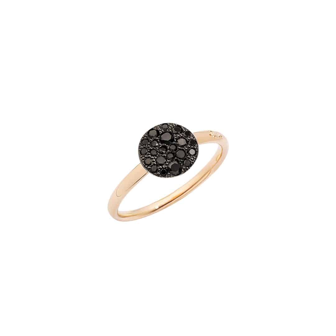 Anell Pomellato Sabbia d’or rosa i diamants negres sobre or rosa rodiat en negre.