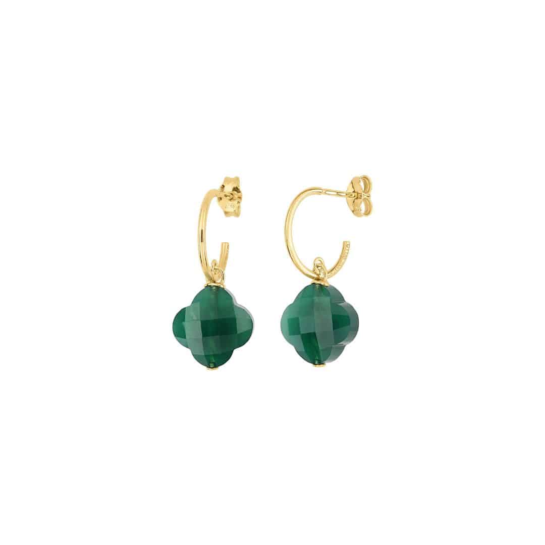 Arracades Morganne Bello Friandise Intemporels, trèvol àgata verda i d’or groc.