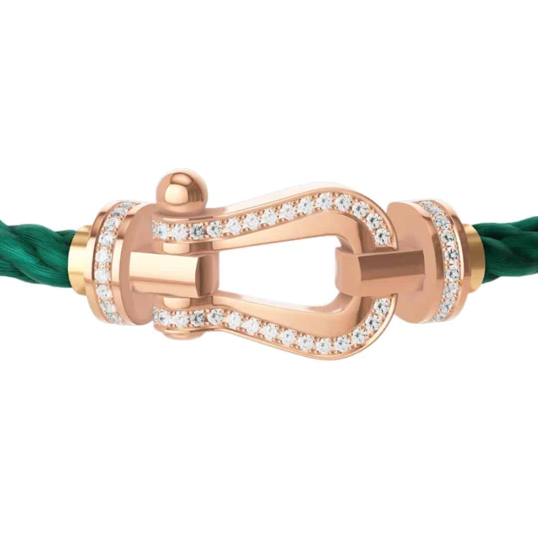 Braçalet Fred manilla Force 10 gran d’or rosa i pavée diamants. Consultar la varietat de colors disponibles de cables.