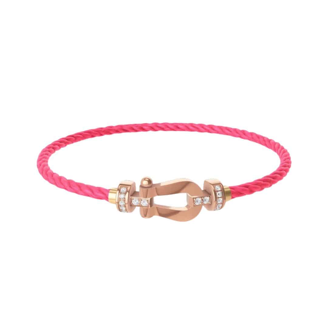 Braçalet Fred manilla Force 10 mida mitjana d’or rosa i 14 diamants. Consultar la varietat de colors disponibles de cables