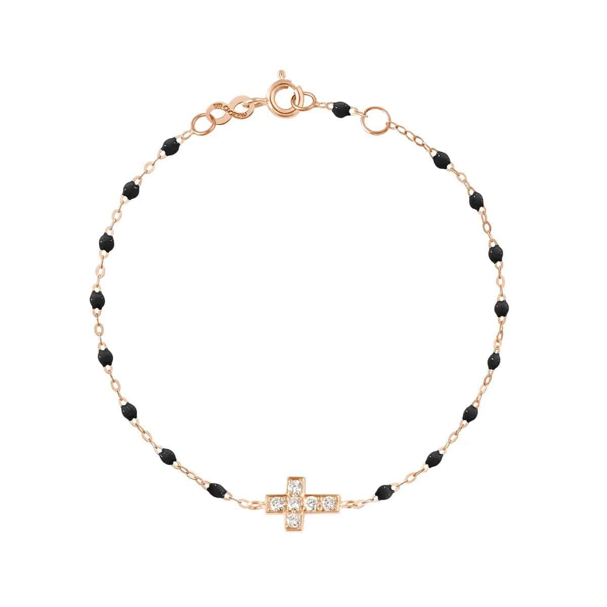 Braçalet Gigi Clozeau Creu 0k12 de 17 cm d’or rosa, diamant i resina negra. * Consulta la varietat de colors disponibles.