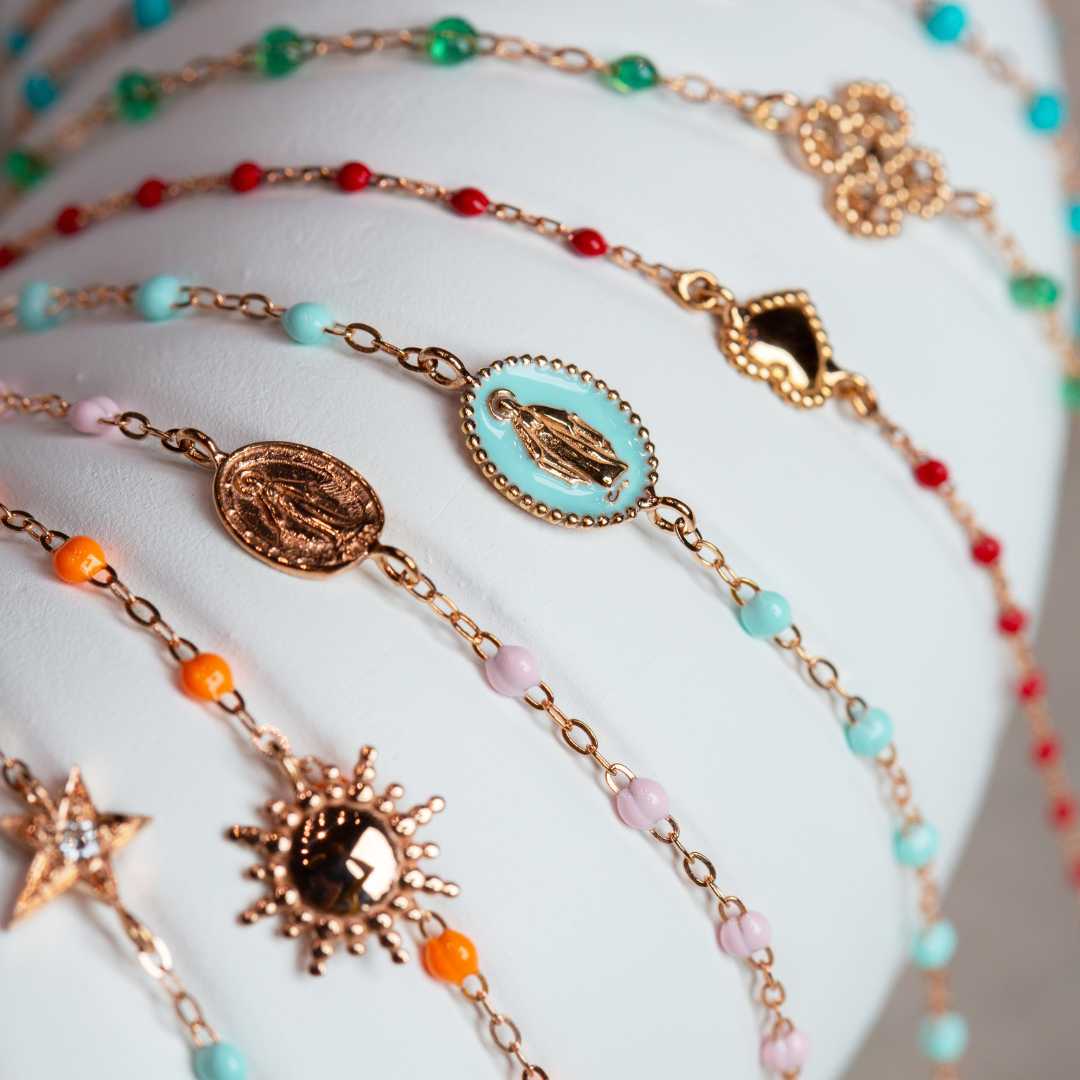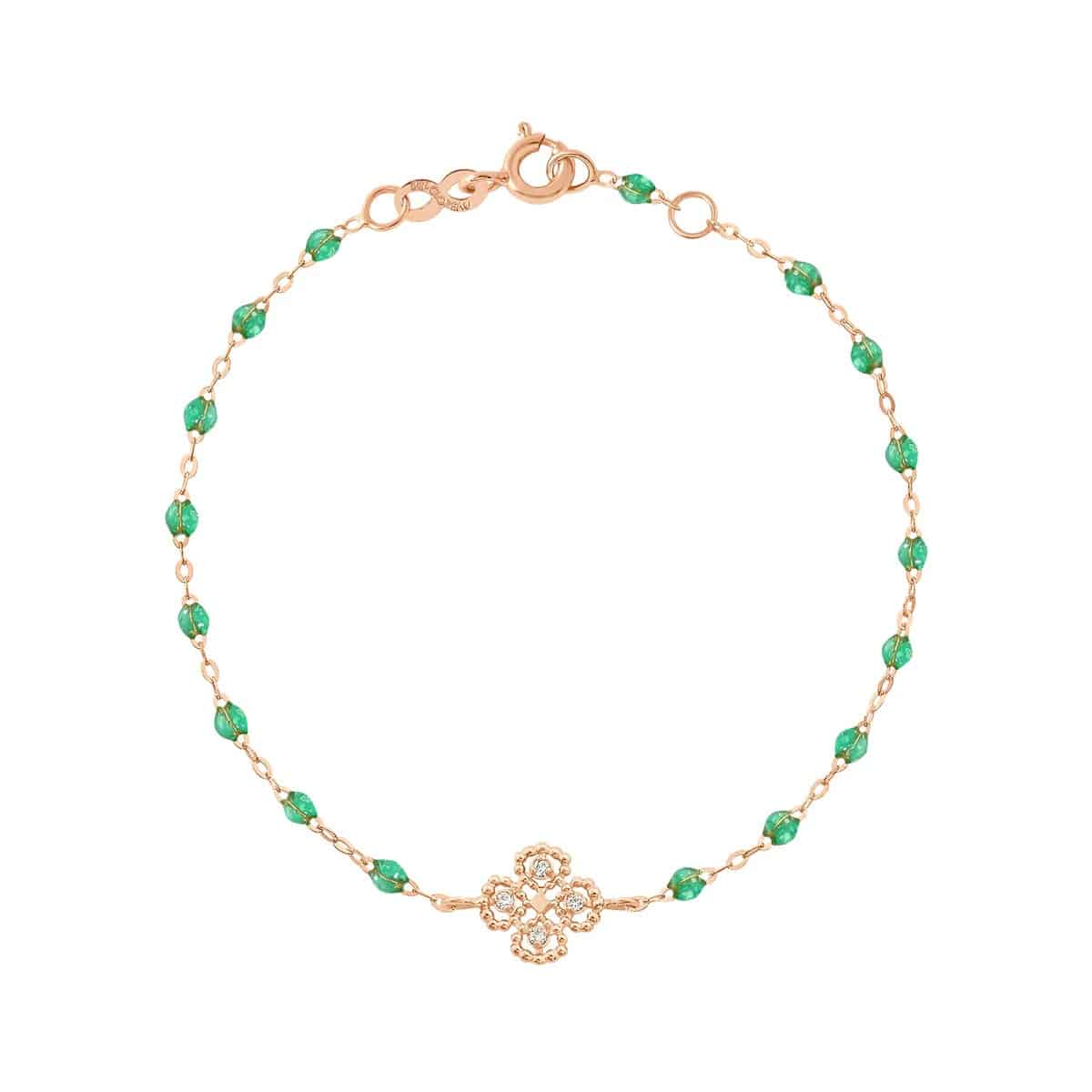 Braçalet Gigi Clozeau Lucky de 18 cm d’or rosa amb trèvol, diamant i resina menta * Consulta la varietat de colors disponibles