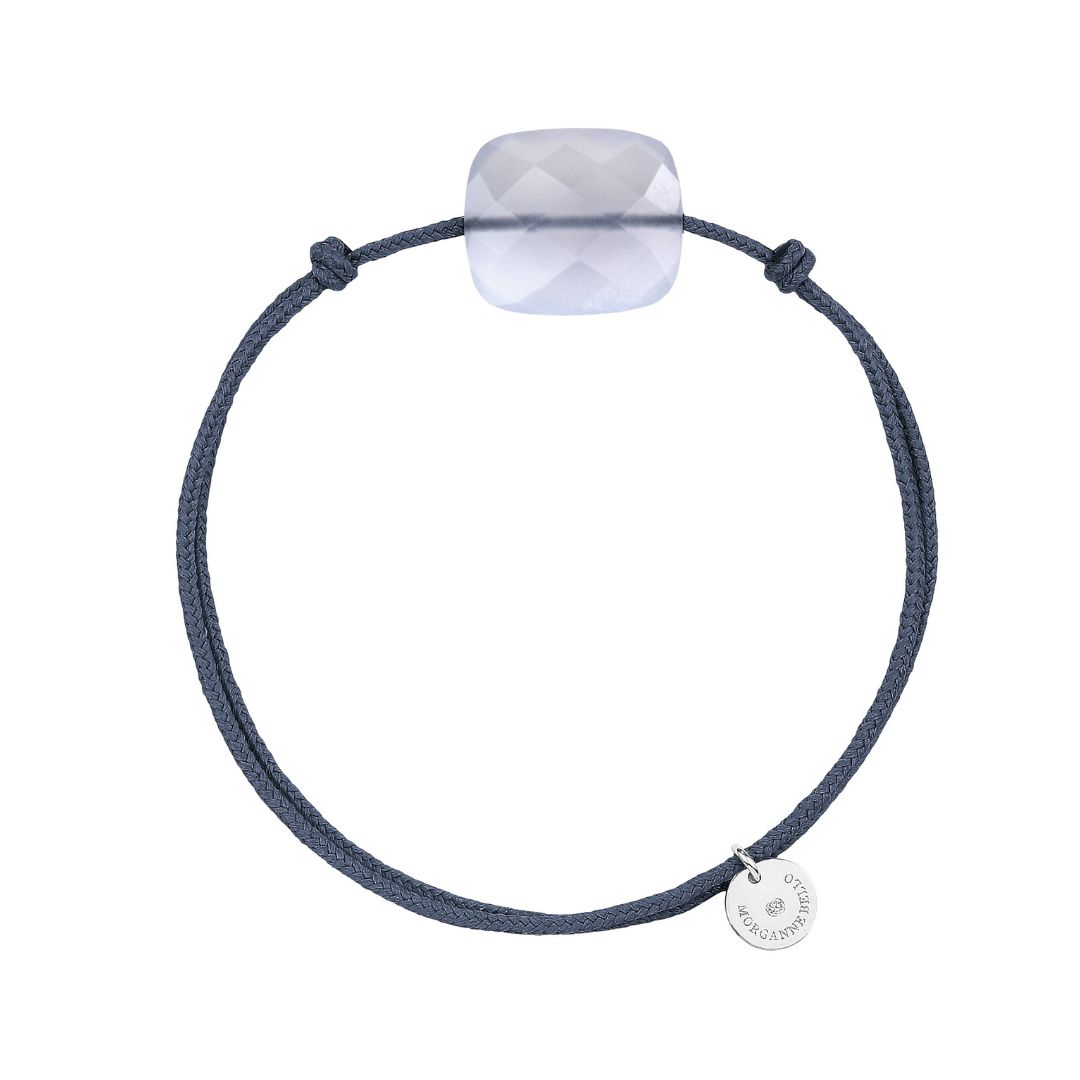 Braçalet Morganne Bello Friandise, cordó blau texà amb coixí d’àgata dentelle i argent.
