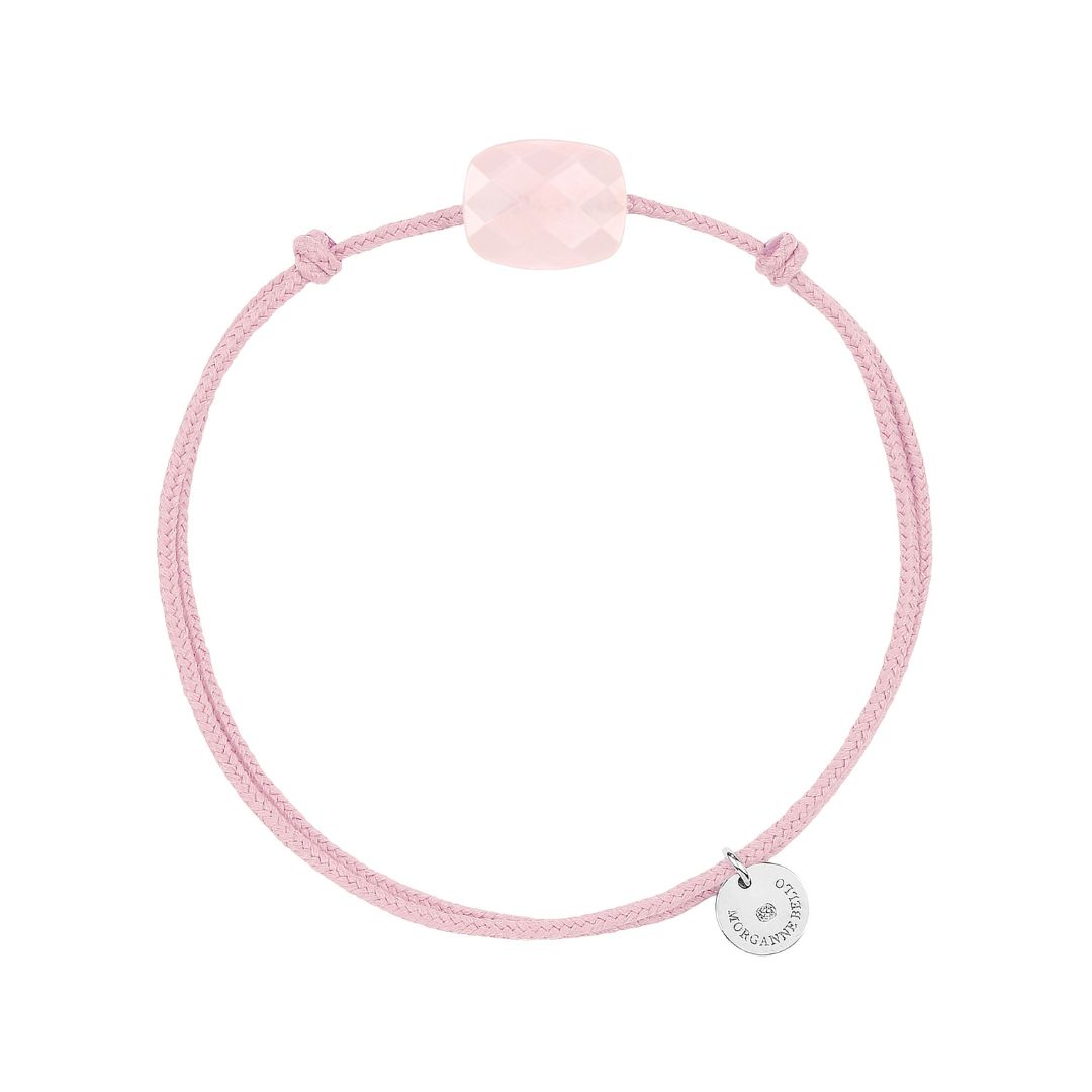 Braçalet Morganne Bello Friandise, cordó rosa antic, coixí quars rosa pols i argent.