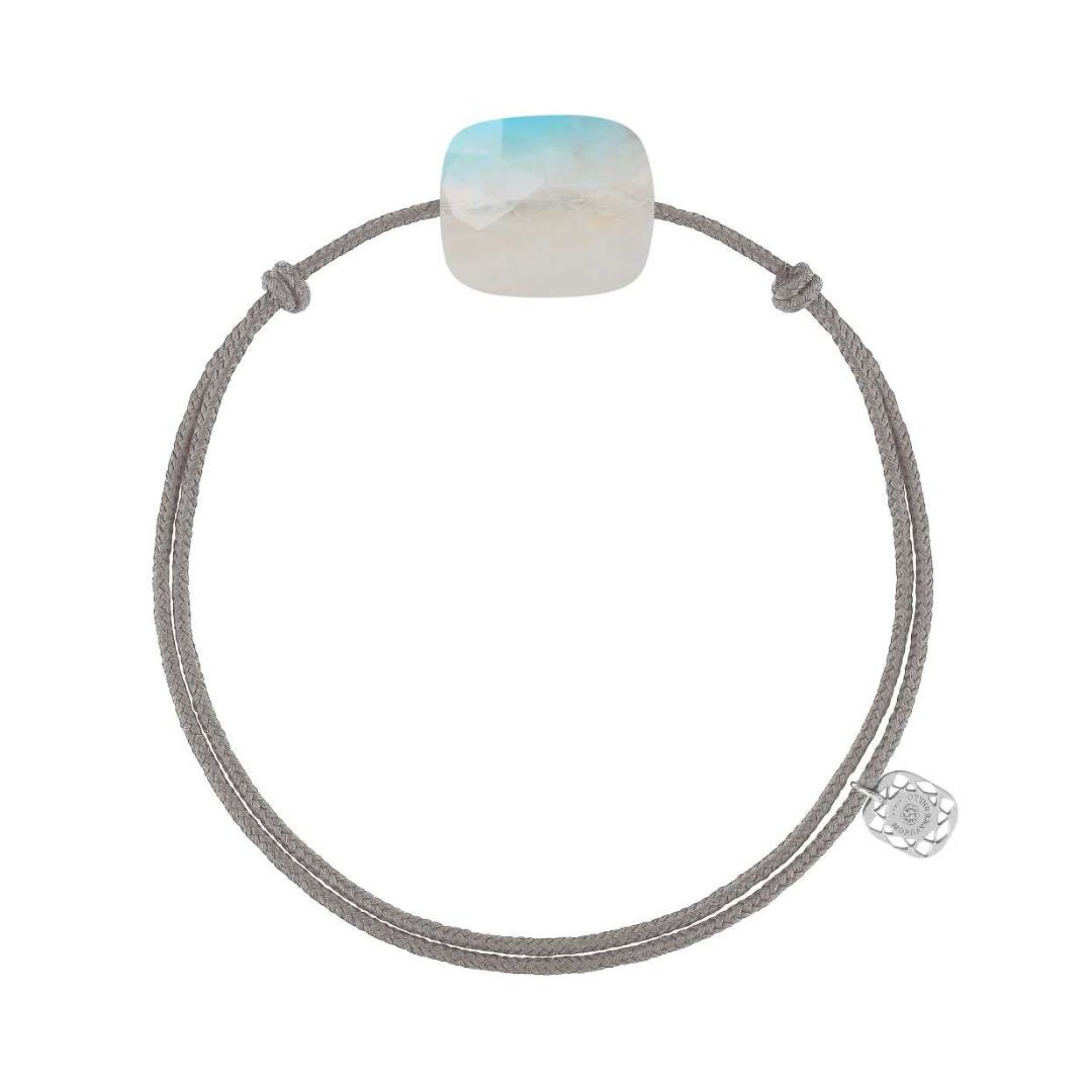 Braçalet Morganne Bello Friandise, cordó gris, coixí de pedra lluna arc de sant martí i argent.