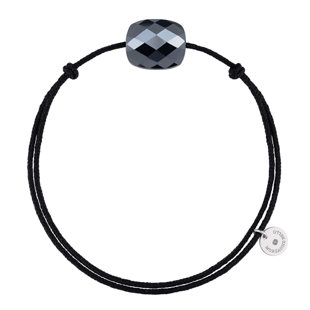 Brazalet Morganne Bello Friandise, cordó negre, coixí d’hematita negra i argent.
