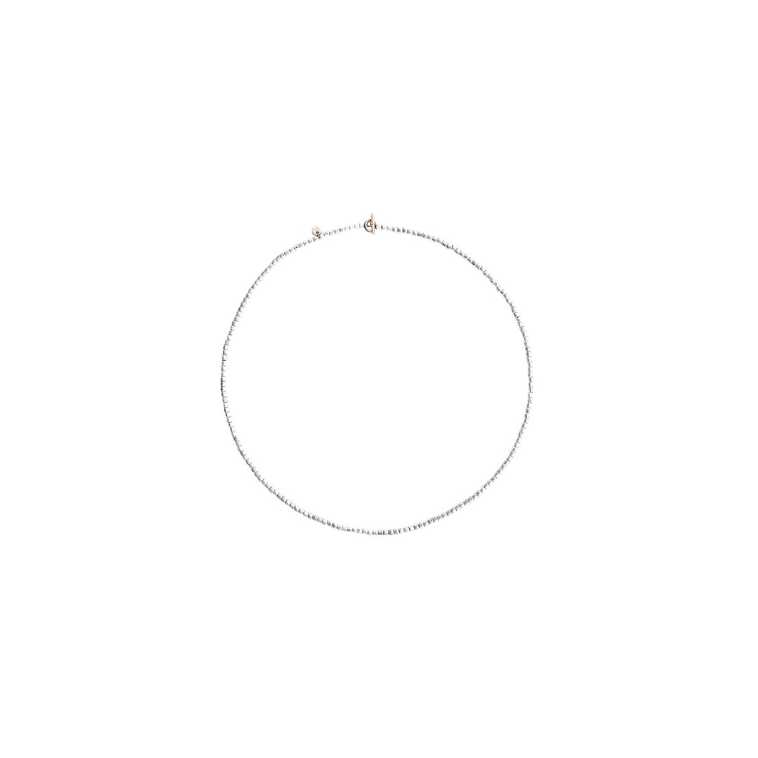 Collar DoDo Mini Granelli de 46 cm d’argent, cadena i anella d’acer, tanca amb forma de T d’or rosa i plaques d’argent i acer.