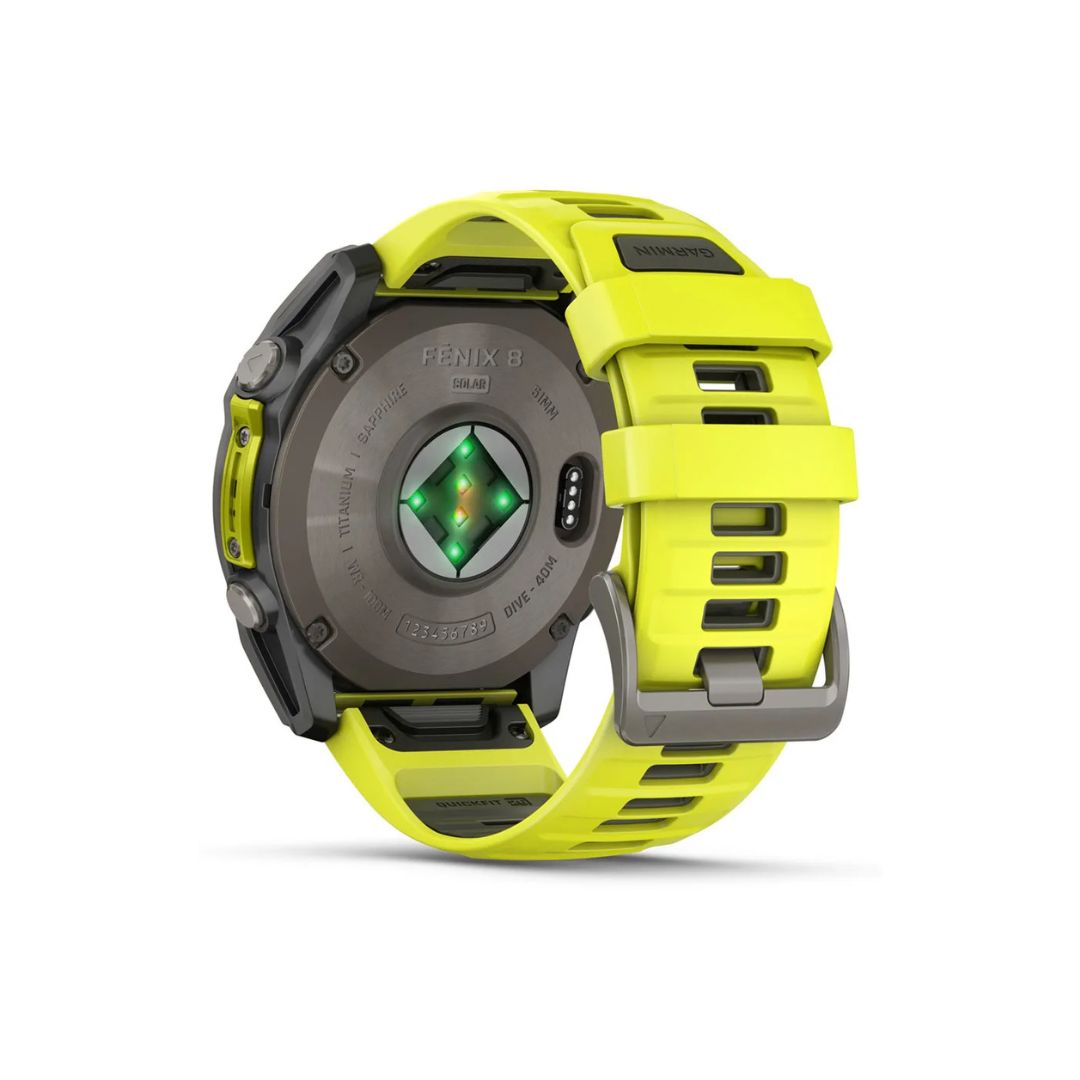 Rellotge Garmin Fenix 8 Solar Sapphire de 51 mm de diàmetre, caixa de titani i braçalet de silicona. És un smartwatch amb GPS ideal per a esportistes professionals i aventurers que volen superar els seus límits.