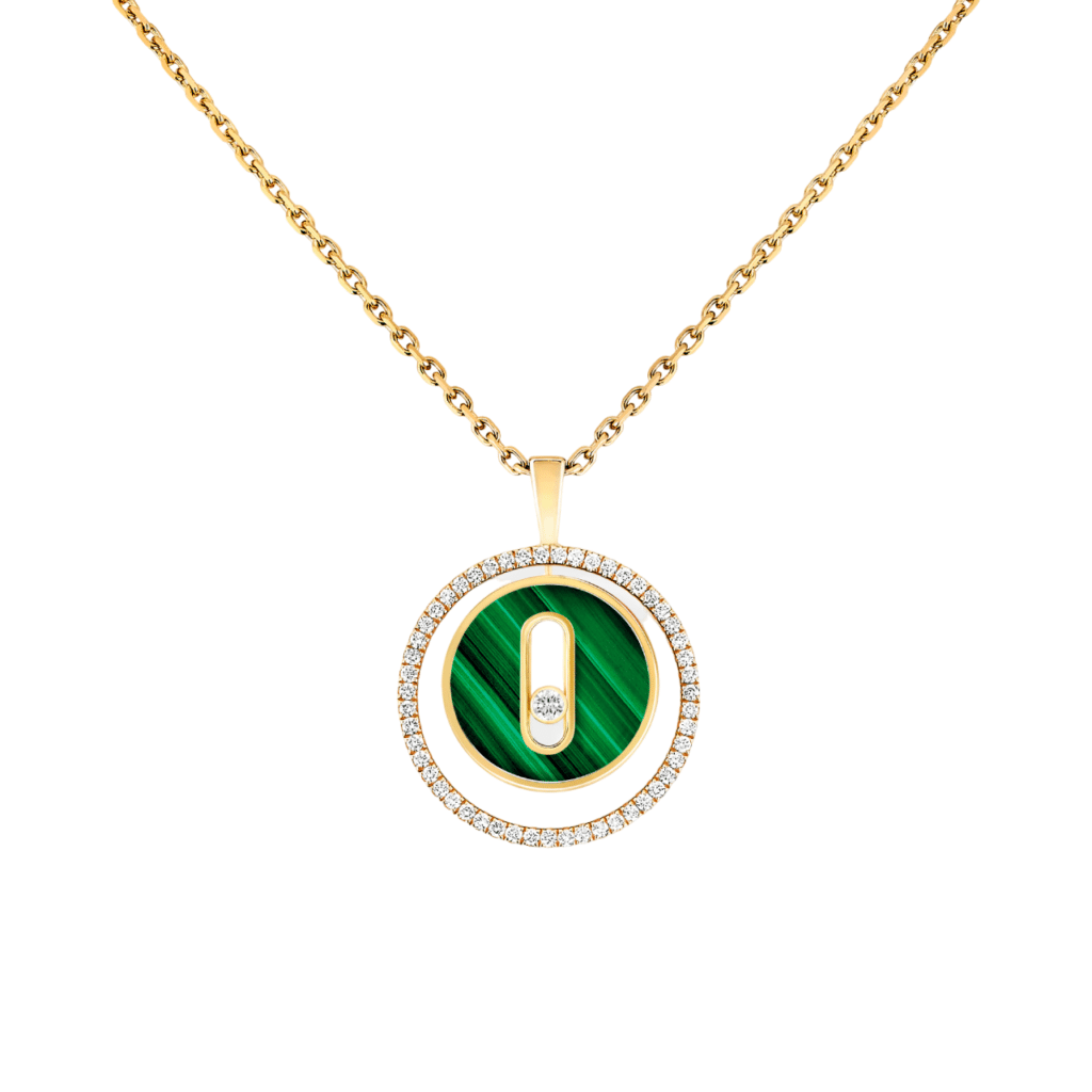 MESSIAH NECKLACE LUCKY MOVE PM YELLOW GOLD, DIAMONDS AND MALACHITE