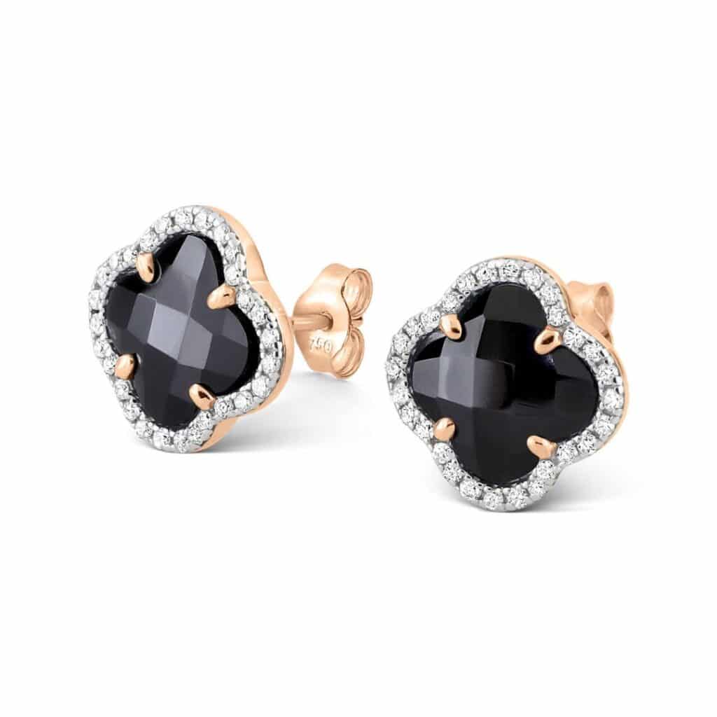 MORGANNE BELLO VICTORIA STUD EARRINGS , ROSE GOLD, DIAMONDS AND ONYX
