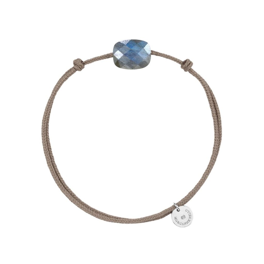 MORGANNE BELLO MINI TAUPE CORD BRACELET WITH LABRADORITE CUSHION AND SILVER