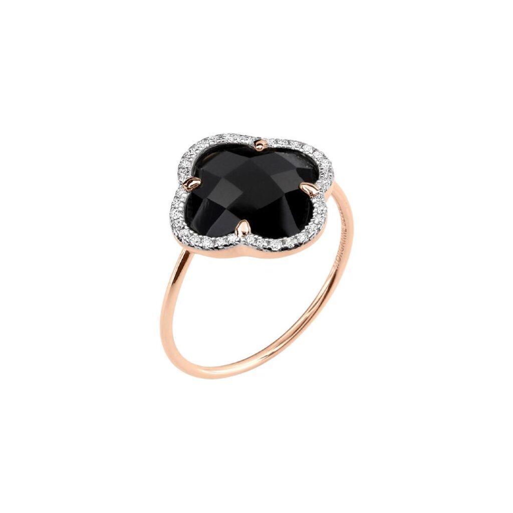 MORGANNE BELLO VICTORIA DIAMANTS RING IN YELLOW GOLD, DIAMONDS AND ONYX