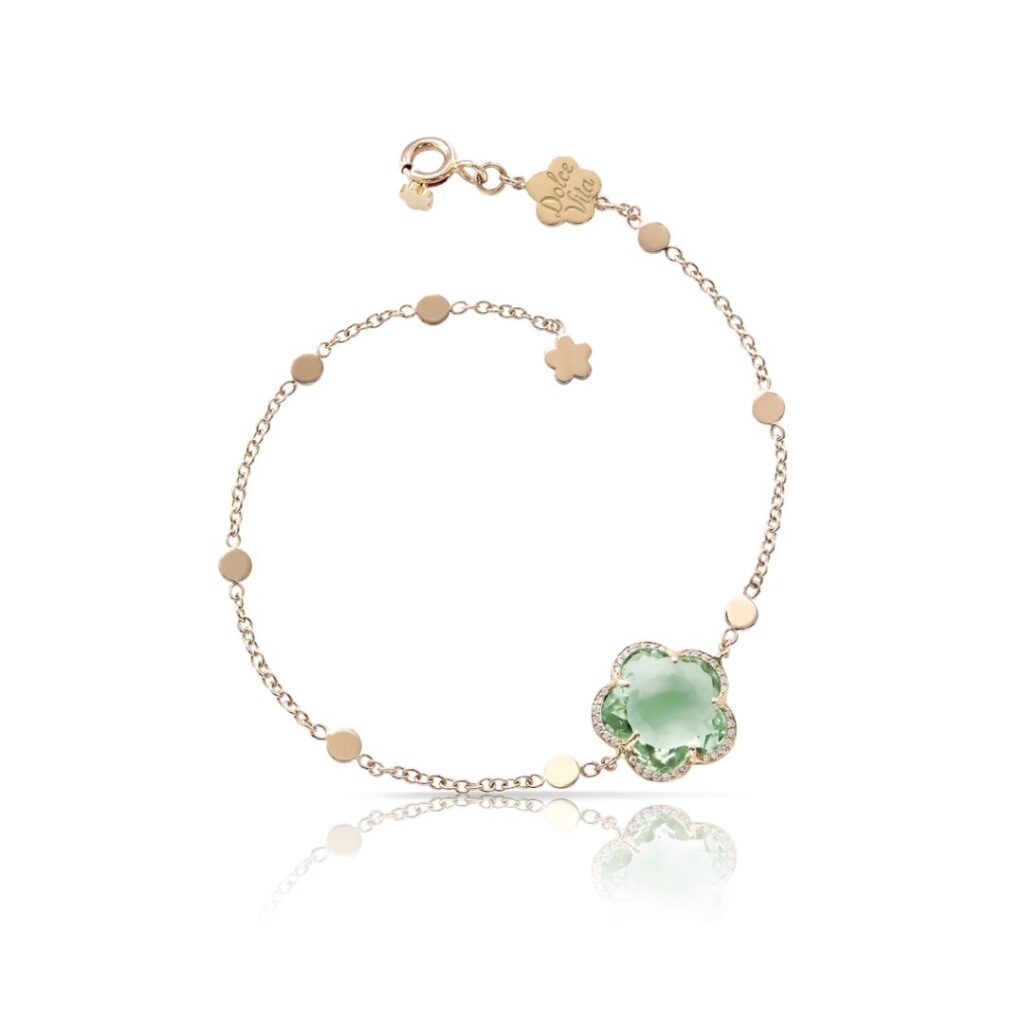 BROWN PASQUALE BON TON BRACELET IN RED GOLD, DIAMOND AND PRASIOLITE