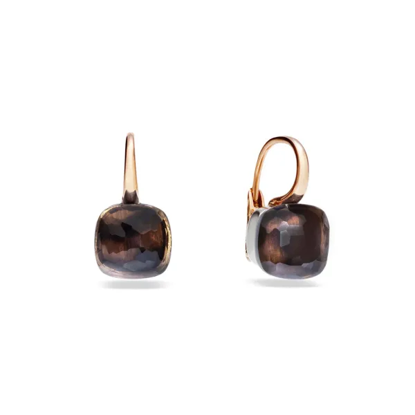 POMELLATO NUDO CLASSIC EARRINGS IN ROSE AND WHITE GOLD AND SMOKE QUARTZ