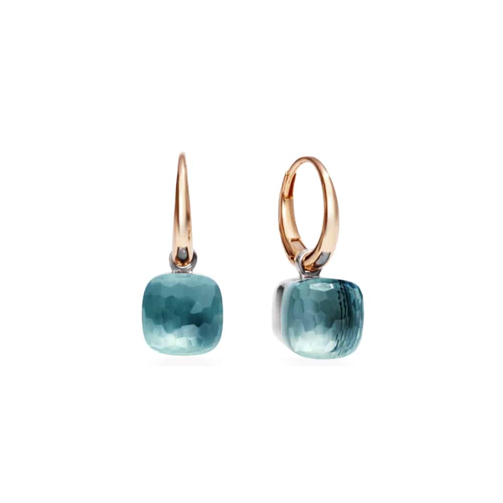 POMELLATO NUDOPM EARRINGS IN ROSE AND WHITE GOLD AND SKY BLUE TOPAZES