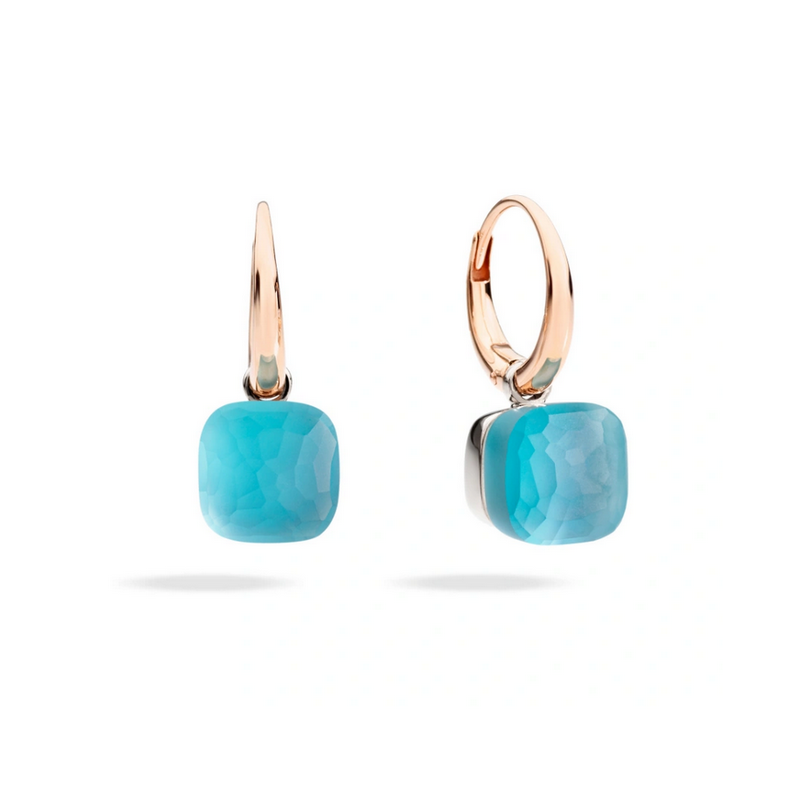 POMELLATO NUDOPM EARRINGS IN ROSE AND WHITE GOLD, BLUE TOPAZ AND MOTHER OF PEARL AND TURQUOISE