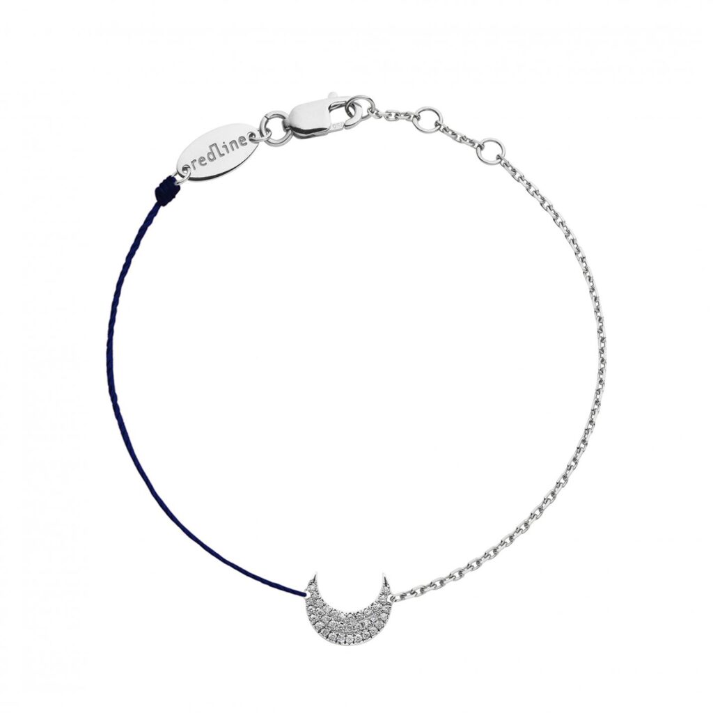 REDLINE MY MOON BRACELET WHITE GOLD CHAIN, NAVY BLUE CORD AND DIAMOND