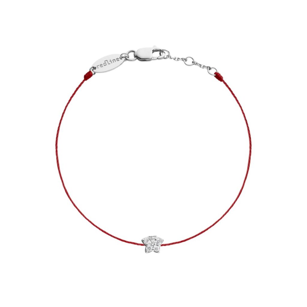 REDLINE CHACHA STAR STRING BRACELET, POPPY CORD, WHITE GOLD AND DIAMOND