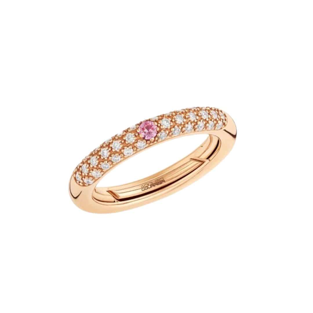 Adolfo Courrier Confetto ring in rose gold, diamonds and pink sapphire.