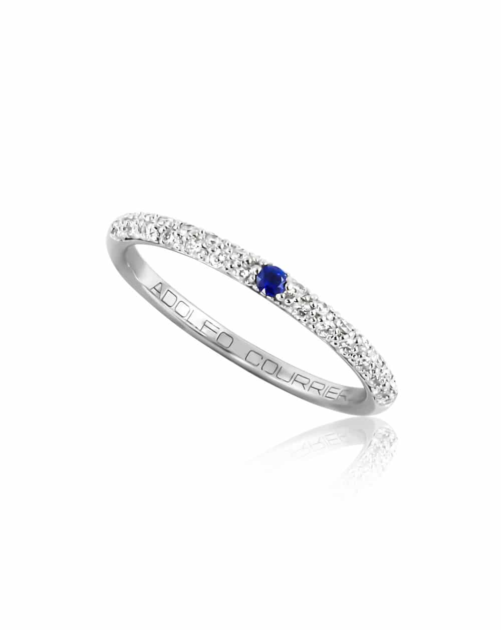 Adolfo Courrier Jeans ring in white gold, diamonds and blue sapphire.