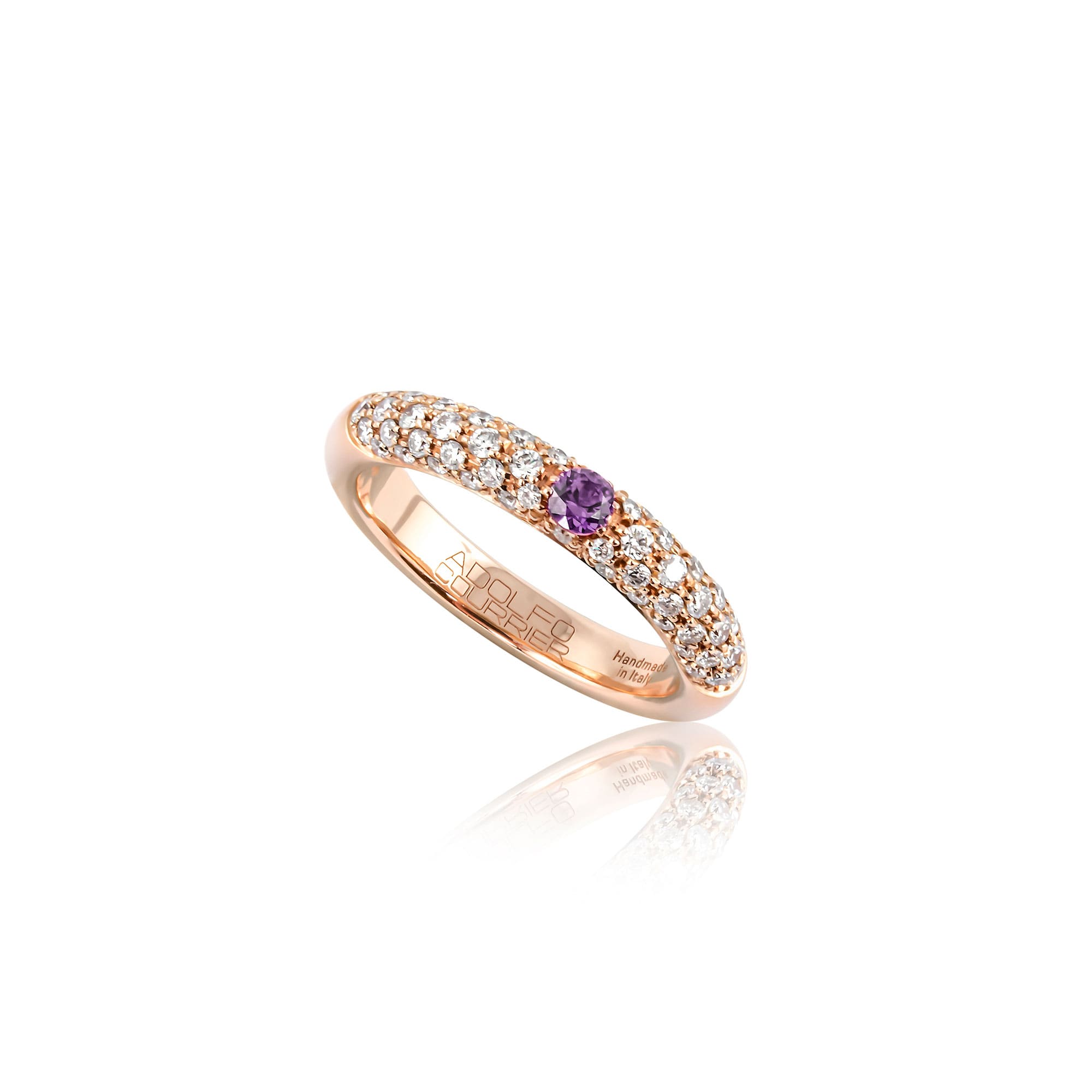 Adolfo Courrier Pop1 Viola ring in rose gold, diamonds, and amethyst.