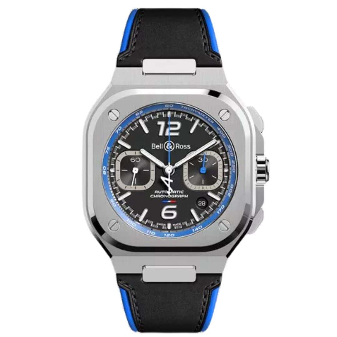 Bell & Ross BR05 A523 Alpine 42mm chronograph watches in leather with automatic mechanical movement