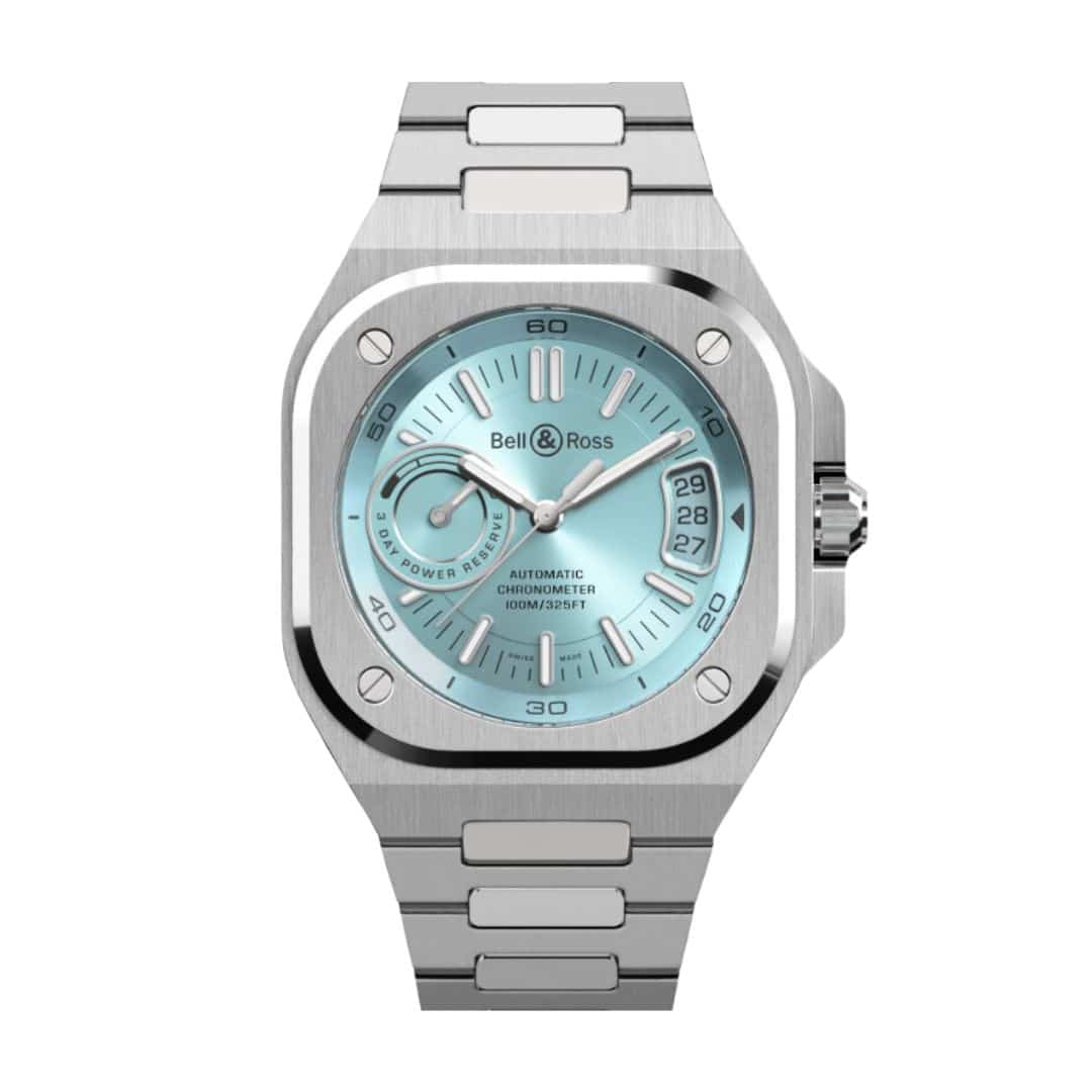 Bell & Ross BR-X5 ice blue 41mm watch, steel case and bracelet, blue dial and automatic mechanical movement