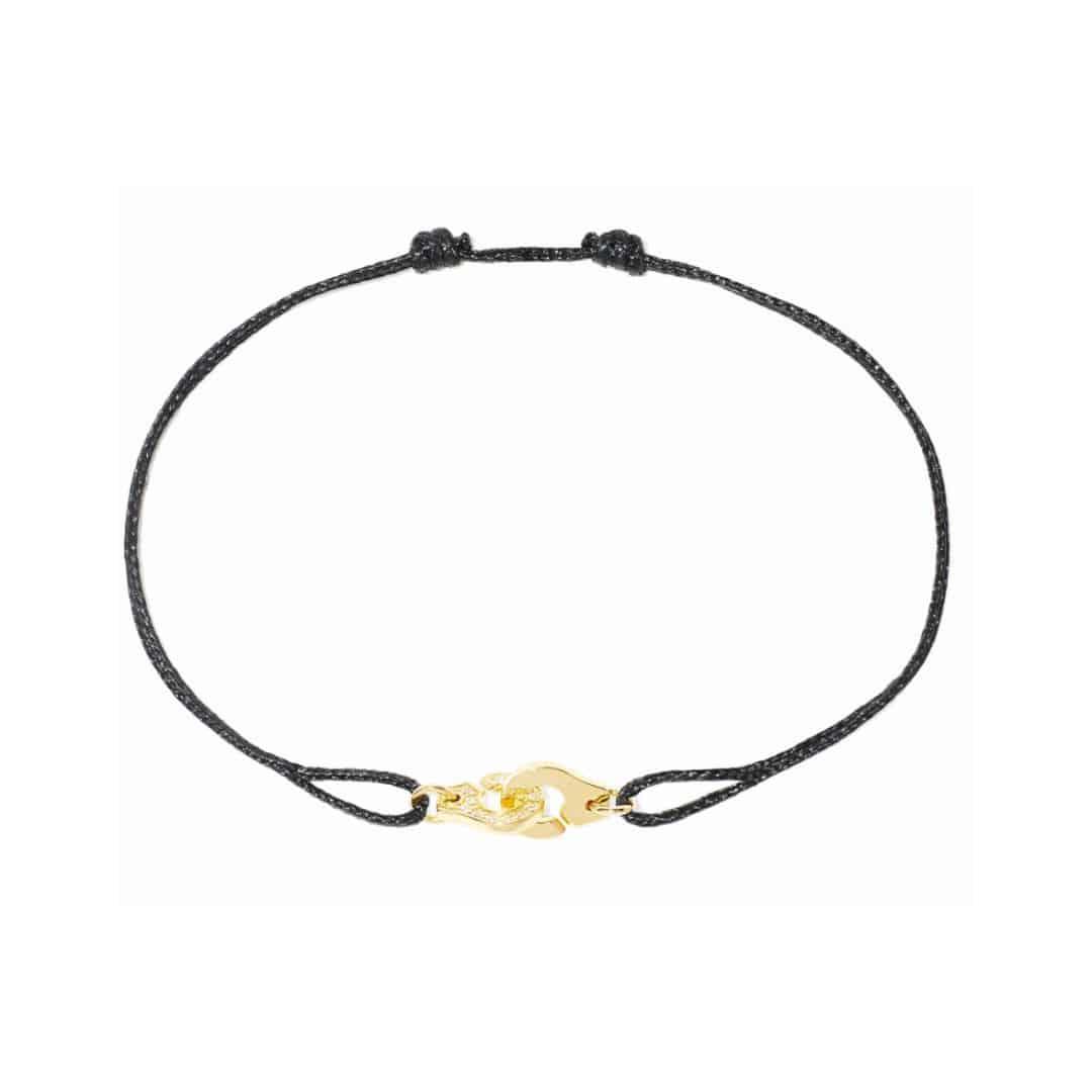dinh van Menottes R6,5 cord bracelet in yellow gold and semi-paved diamonds. See the variety of available cord colours.