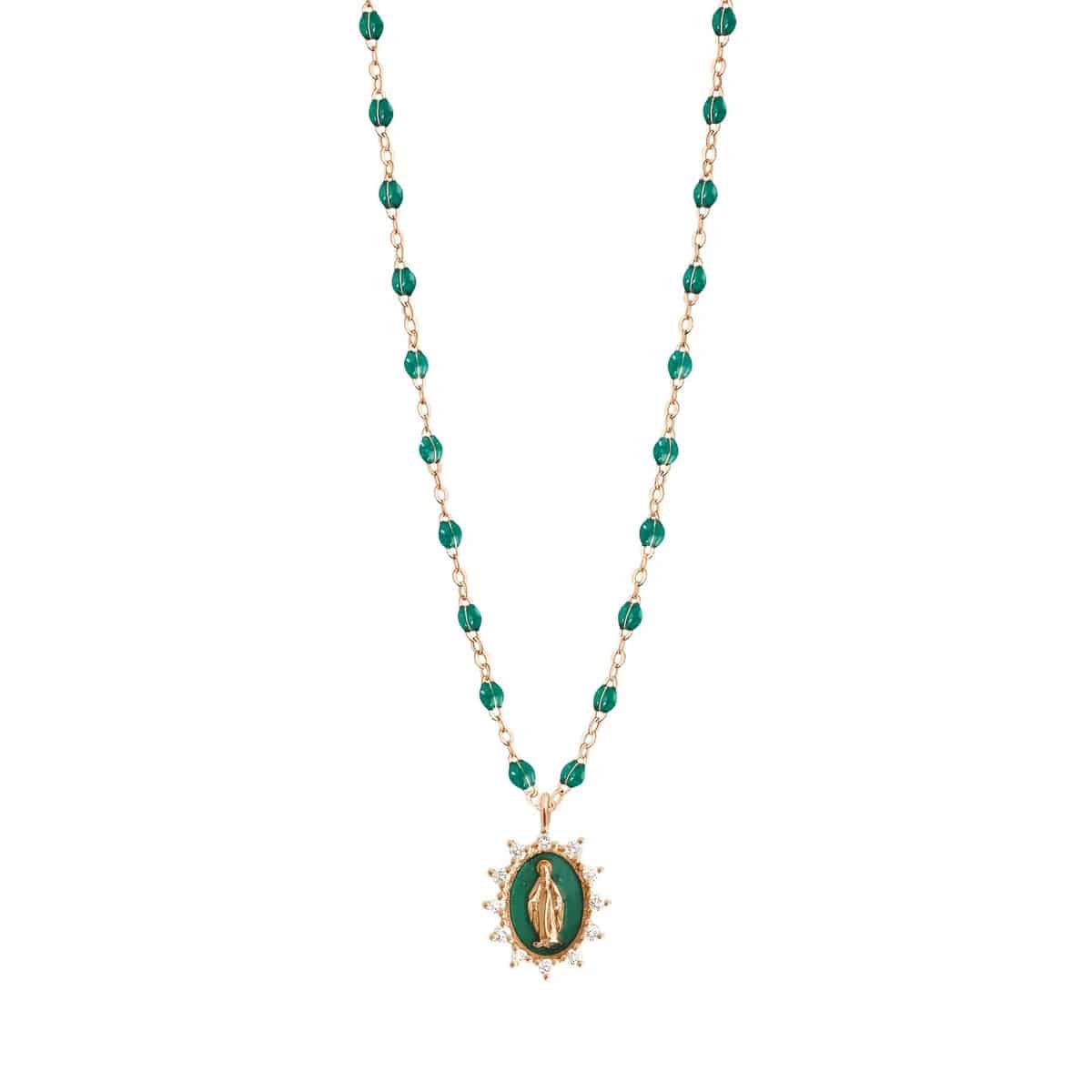Gigi Clozeau Madone Suprême small 50 cm necklace in rose gold, diamond, and emerald resin.