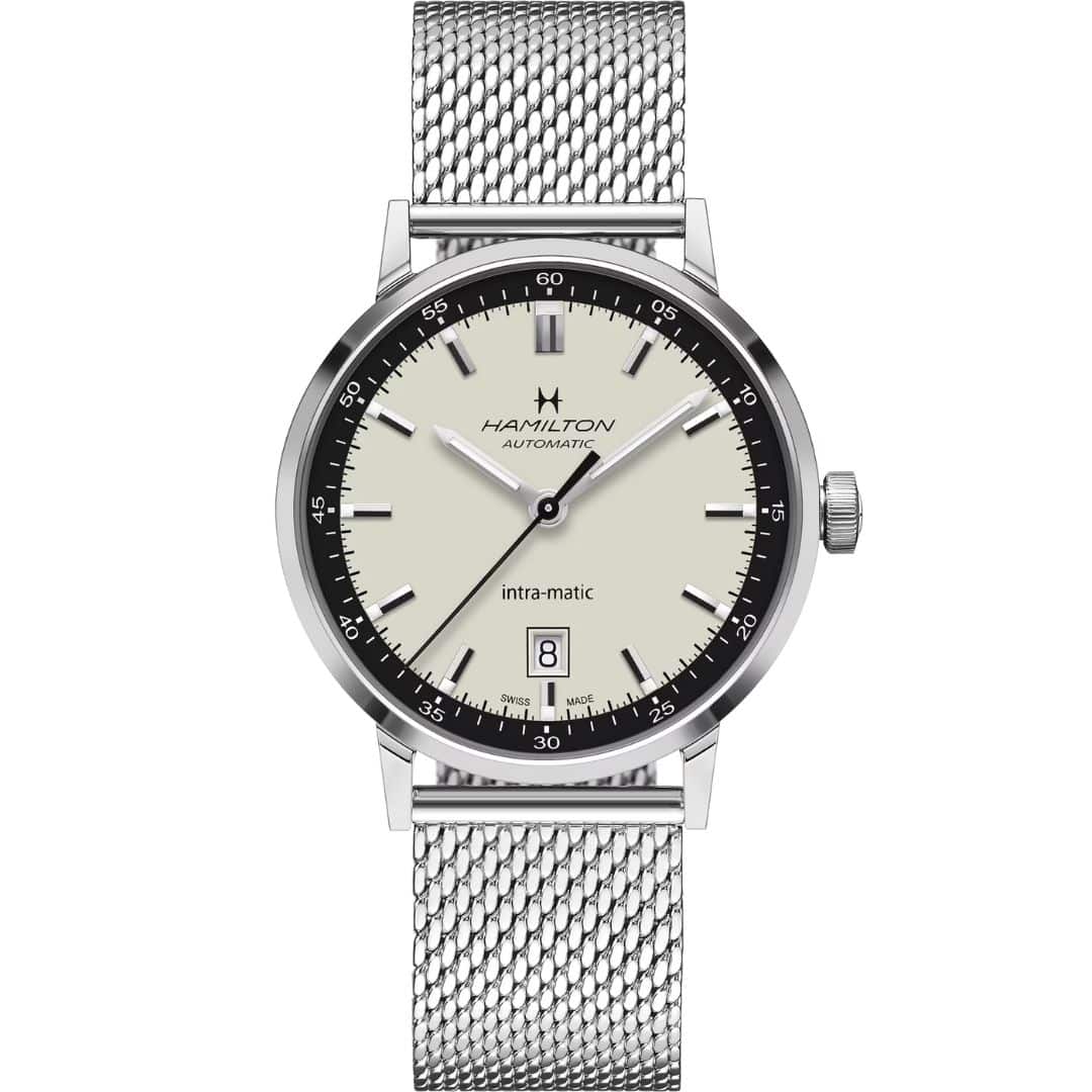 Hamilton American Classic Intramatic 40 mm automatic watch, steel case and bracelet, white dial and automatic movement.