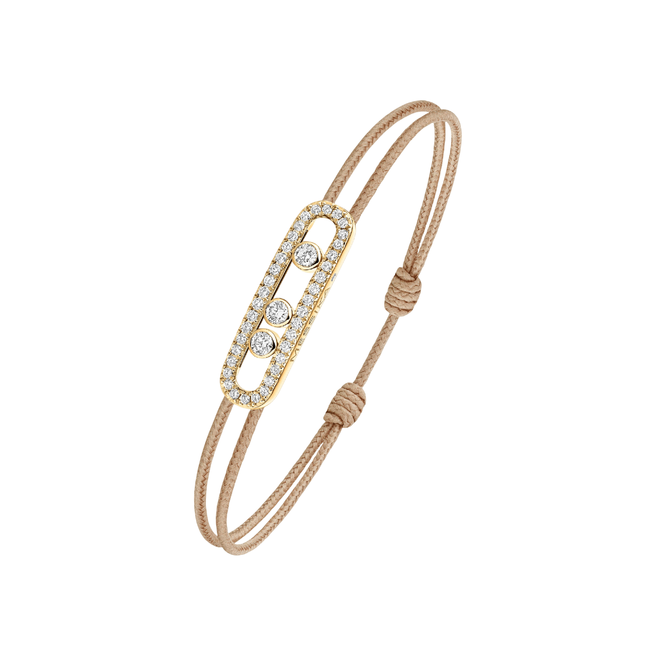 Messika Care(s) bracelet in yellow gold and diamonds with beige cord.