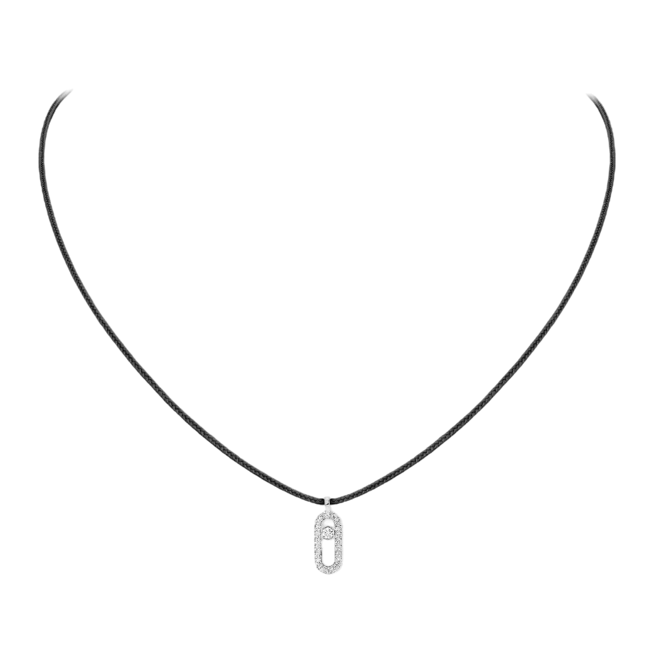 Messika Care(s) necklace in white gold and diamonds with black cord.