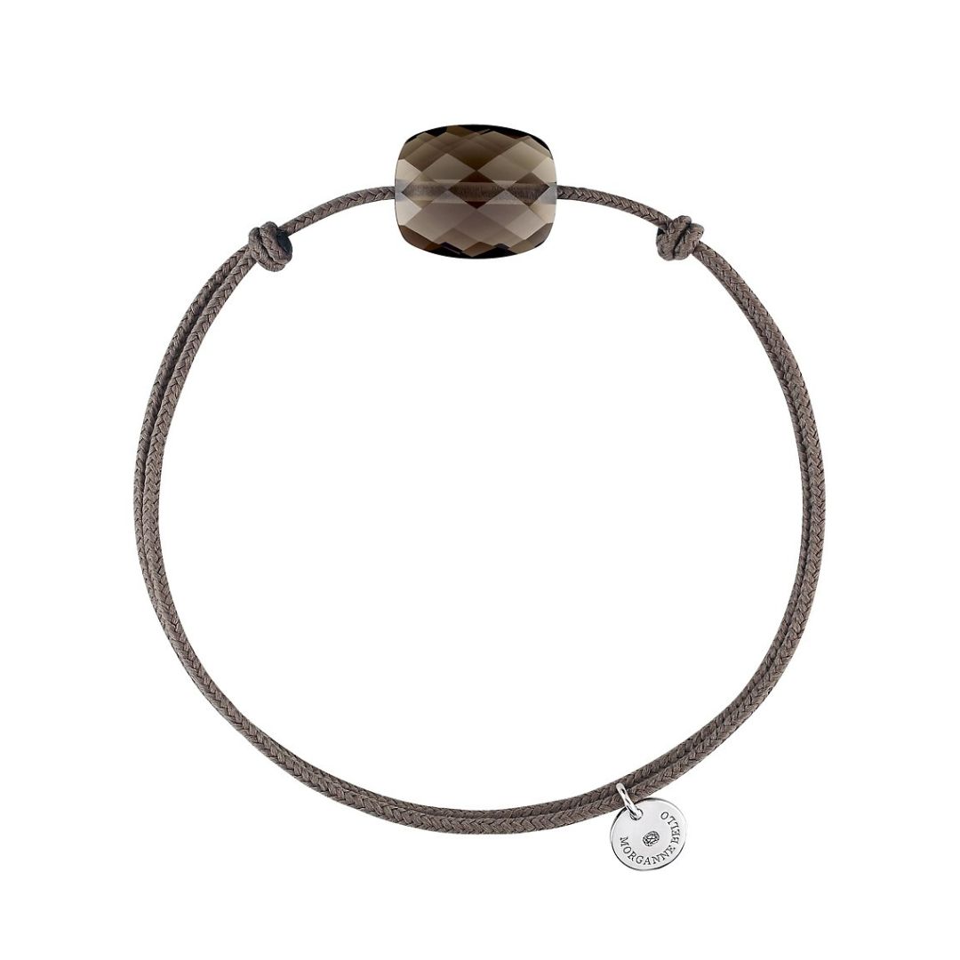 Morganne Bello Friandise bracelet, taupe cord, smoky quartz cushion and silver.
