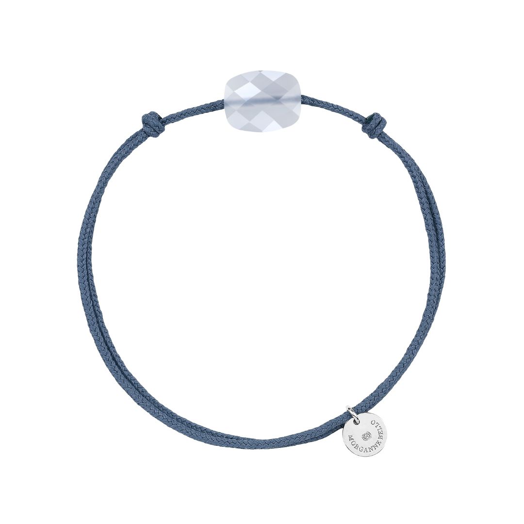 Morganne Bello Friandise bracelet, denim blue cord, blue lace agate cushion and silver.