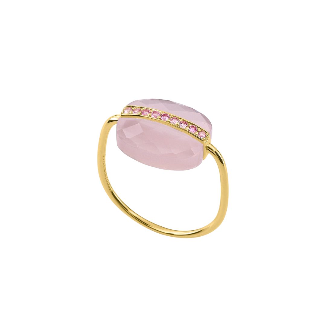 Morganne Bello Milky ring in pink quartz, pink sapphires and yellow gold.