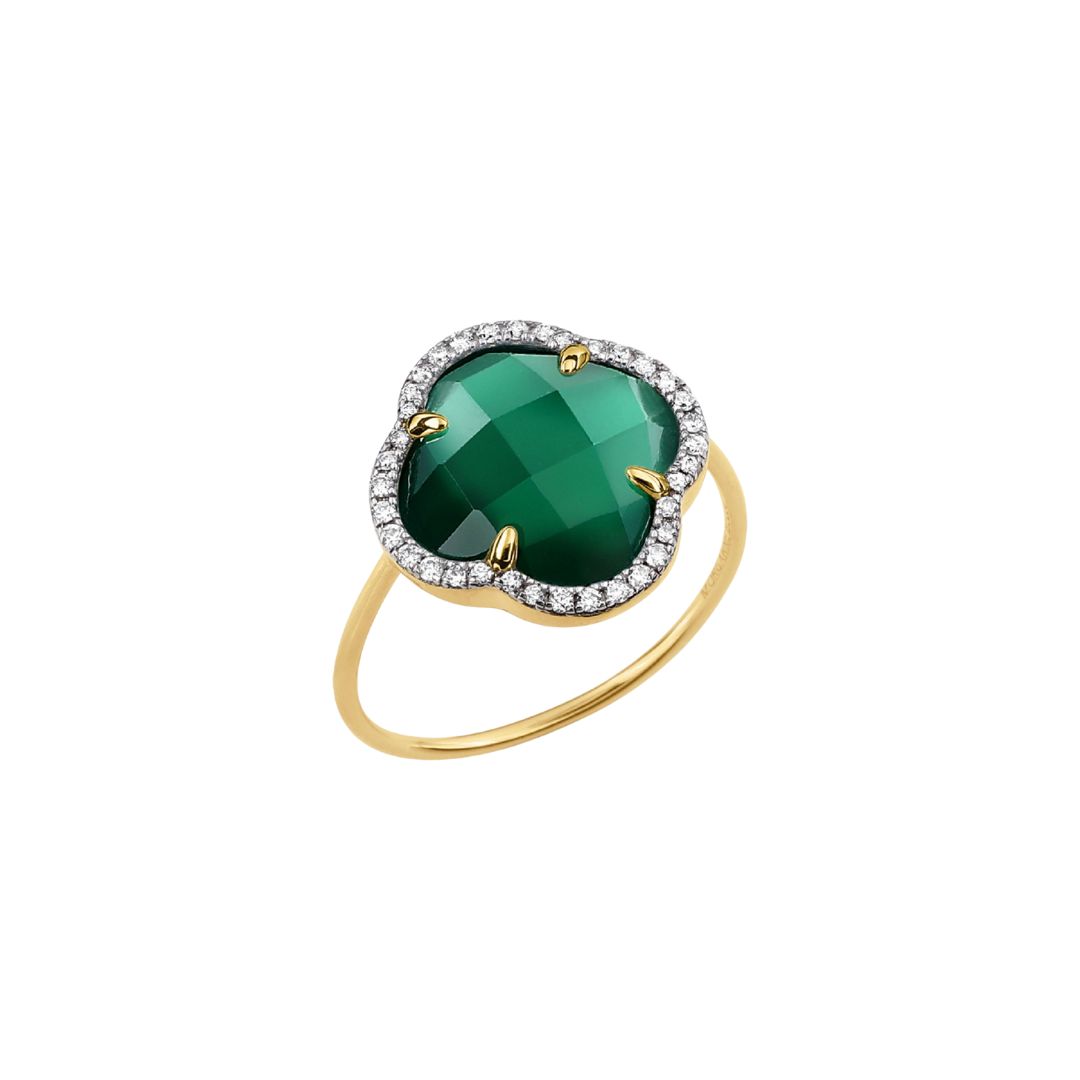 Morganne Bello Victoria Diamants ring in yellow gold, diamonds and green agate.