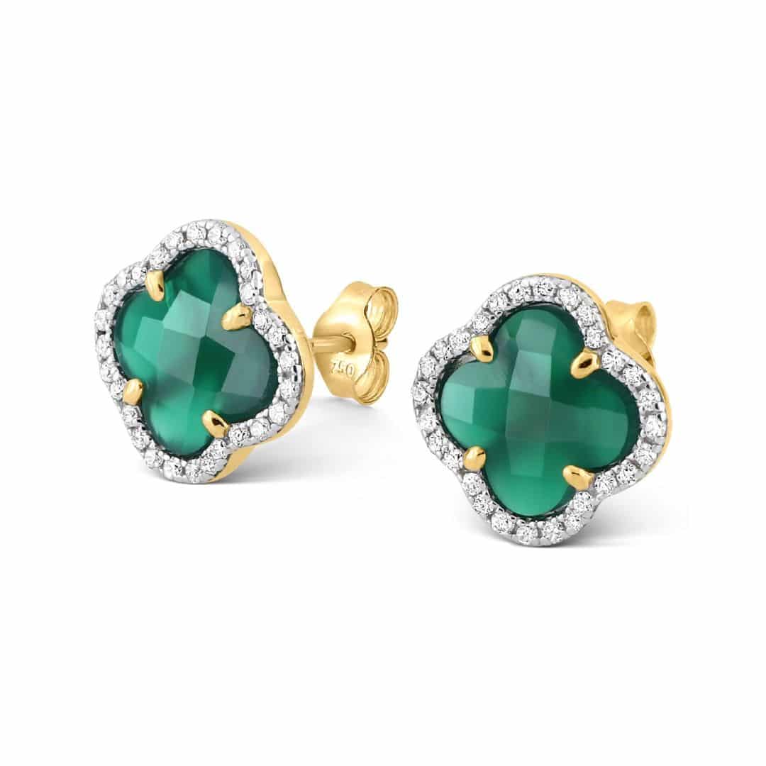 Morganne Bello Victoria stud earrings, in yellow gold, diamonds and green agate.