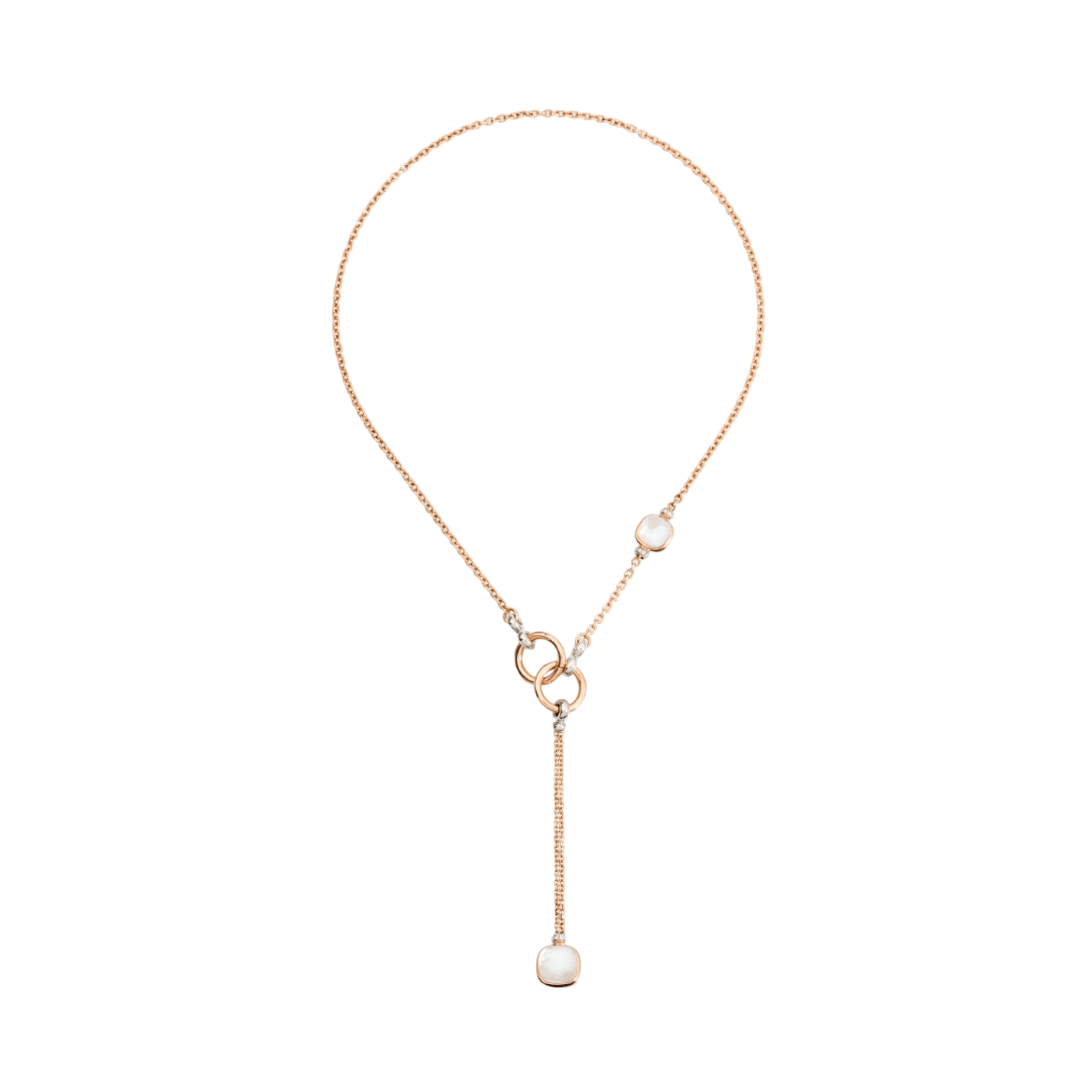 Pomellato Nudo necklace in rose gold and white, mother of pearl, topaz and diamonds.