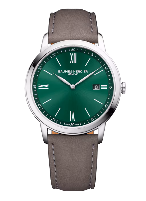 BAUME & MERCIER CLASSIMA 42 MM WATCH IN STEEL AND LEATHER