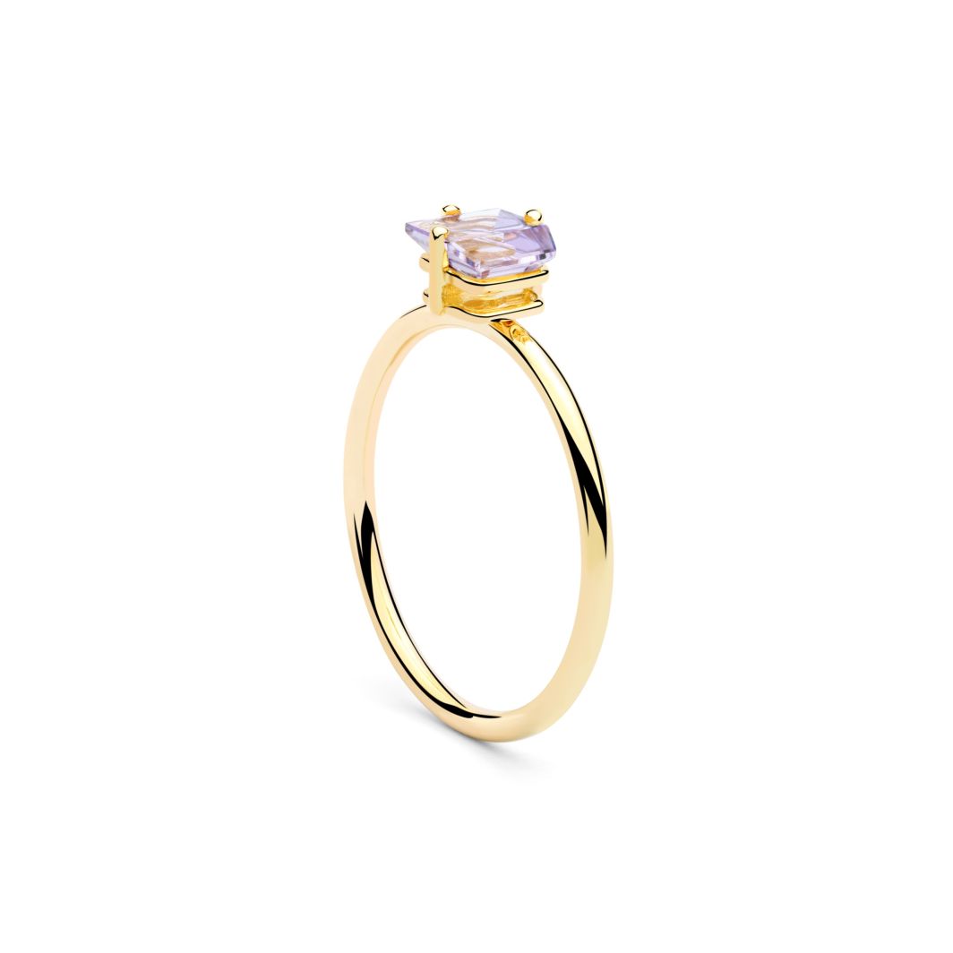 Anillo Misui Klar de oro amarillo y amatista. Diseñado por Estela Guitart y con gemas cortadas por Atelier Munsteiner, en exclusiva para Misui