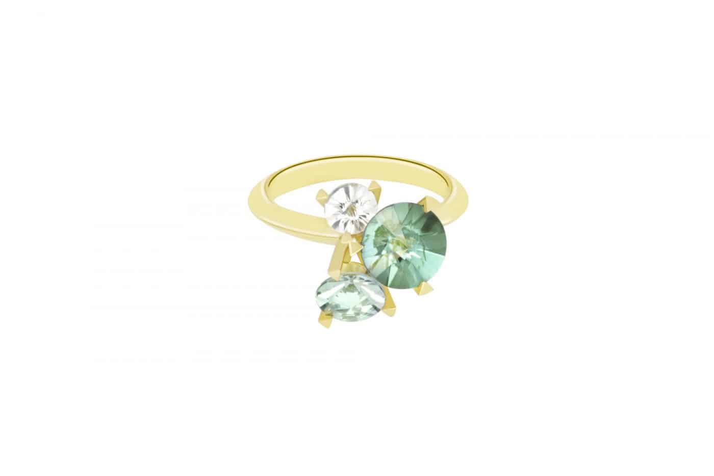 Anillo Misui Third Spirit de oro, diamante, turmalina y aguamarina.