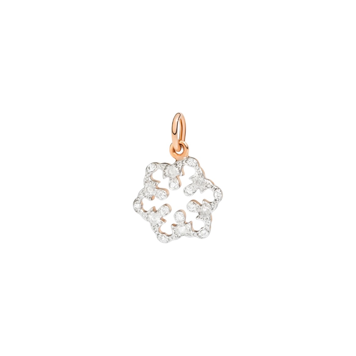Colgante DoDo Nature copo de nieve modelo grande de oro rosa, 12 diamantes blancos y 6 diamantes icy.