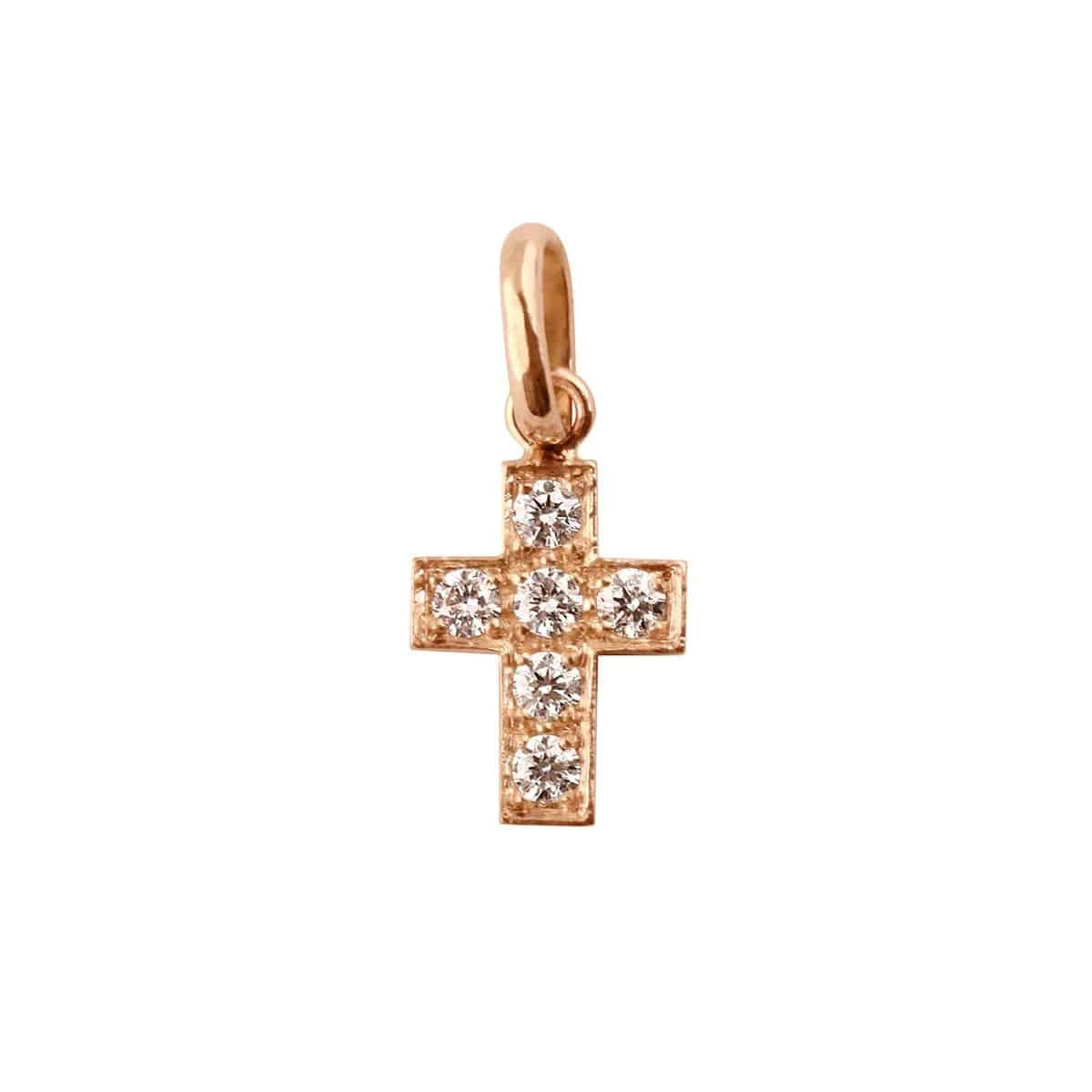 Colgante gigi Clozeau cruz de oro rosa y diamantes.