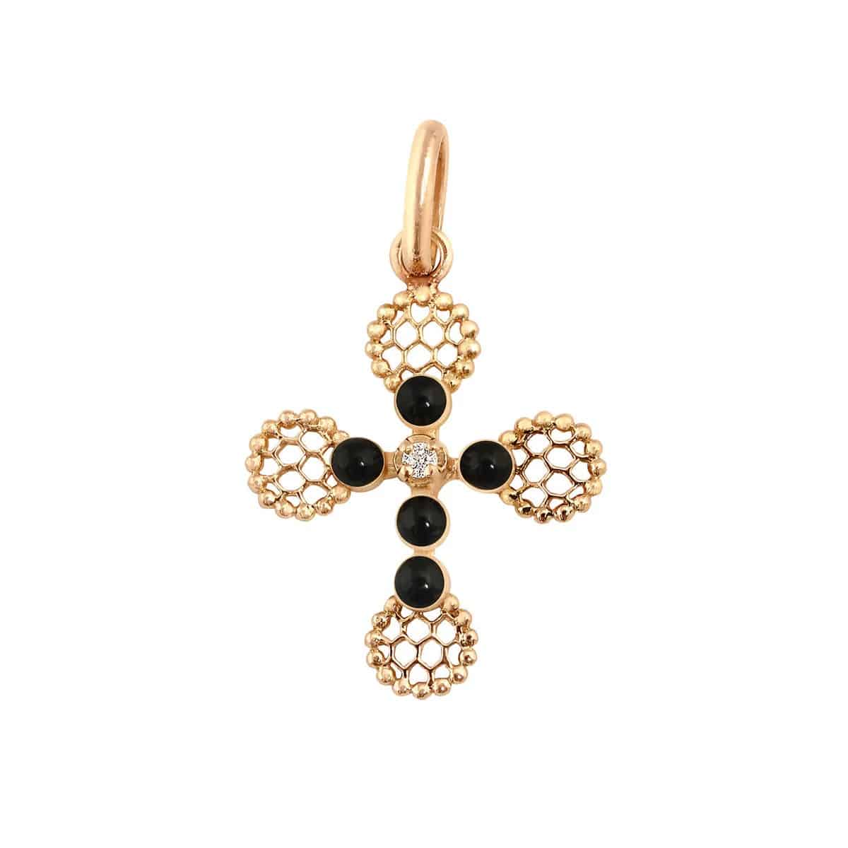 Colgante Gigi Clozeau Cruz Perlada de oro rosa, diamante y resina negra