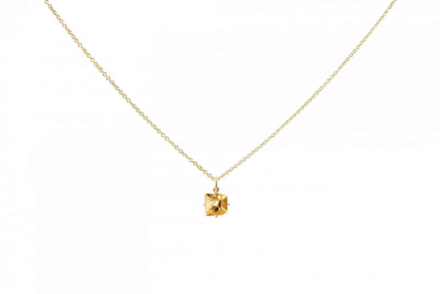 Colgante Misui Klar de oro amarillo i citrino. Diseñado por Estela Guitart y con gemas cortadas por Atelier Munsteiner, en exclusiva para Misui
