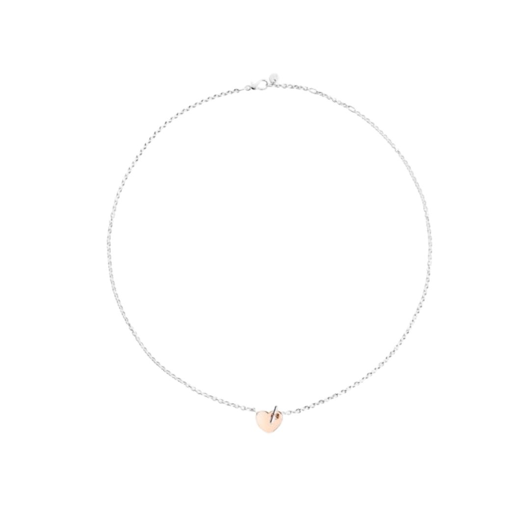 Collar DoDo Corazon con cadena de plata, colgante corazón de oro rosa y cierre de plata.