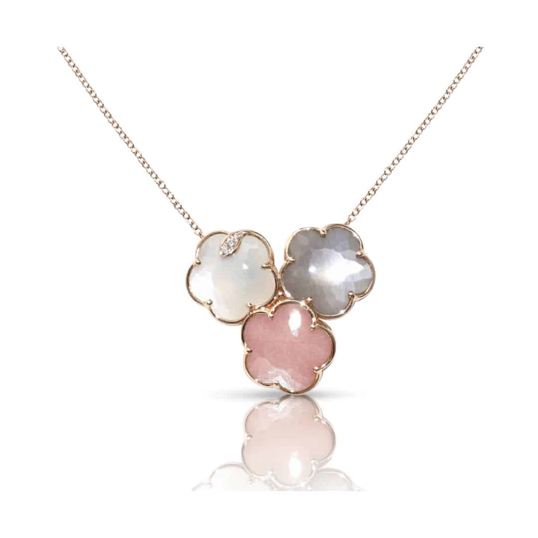 Collar Pasquale Bruni Petit Joli de oro rosa, diamantes y piedra luna blanca, gris y rosa.